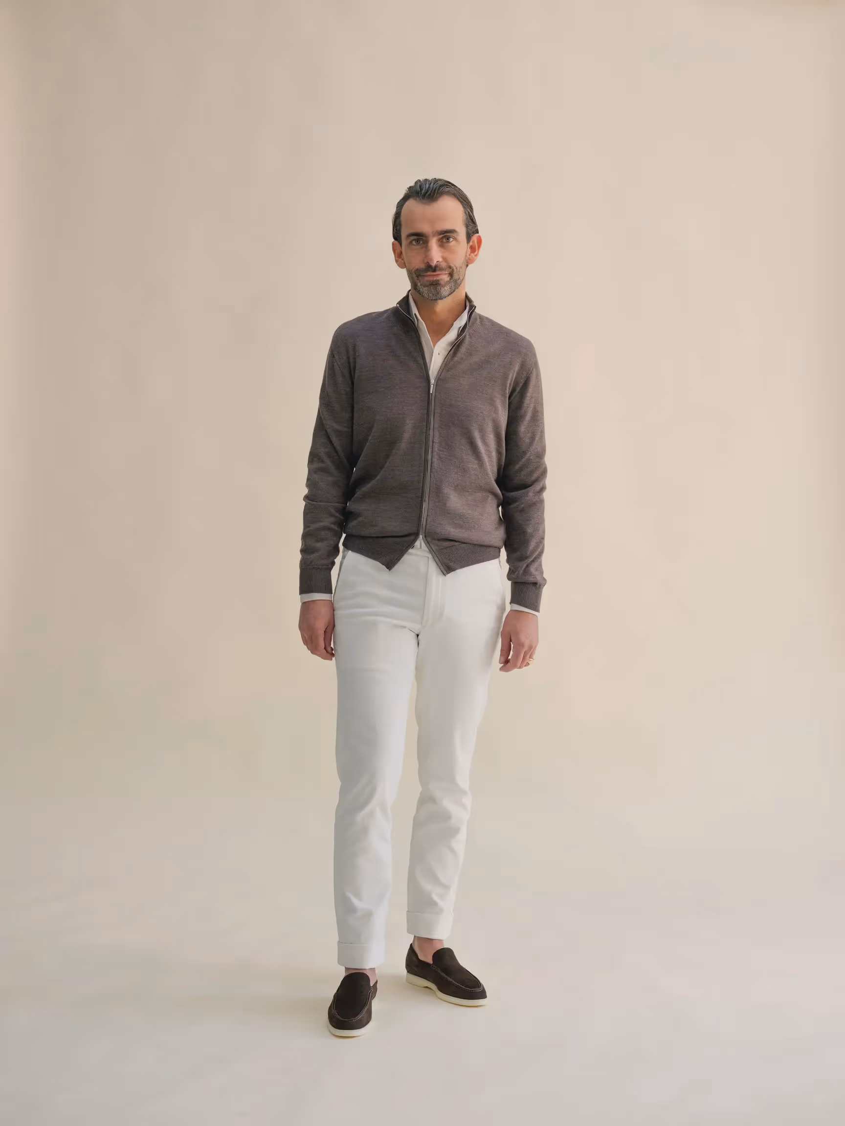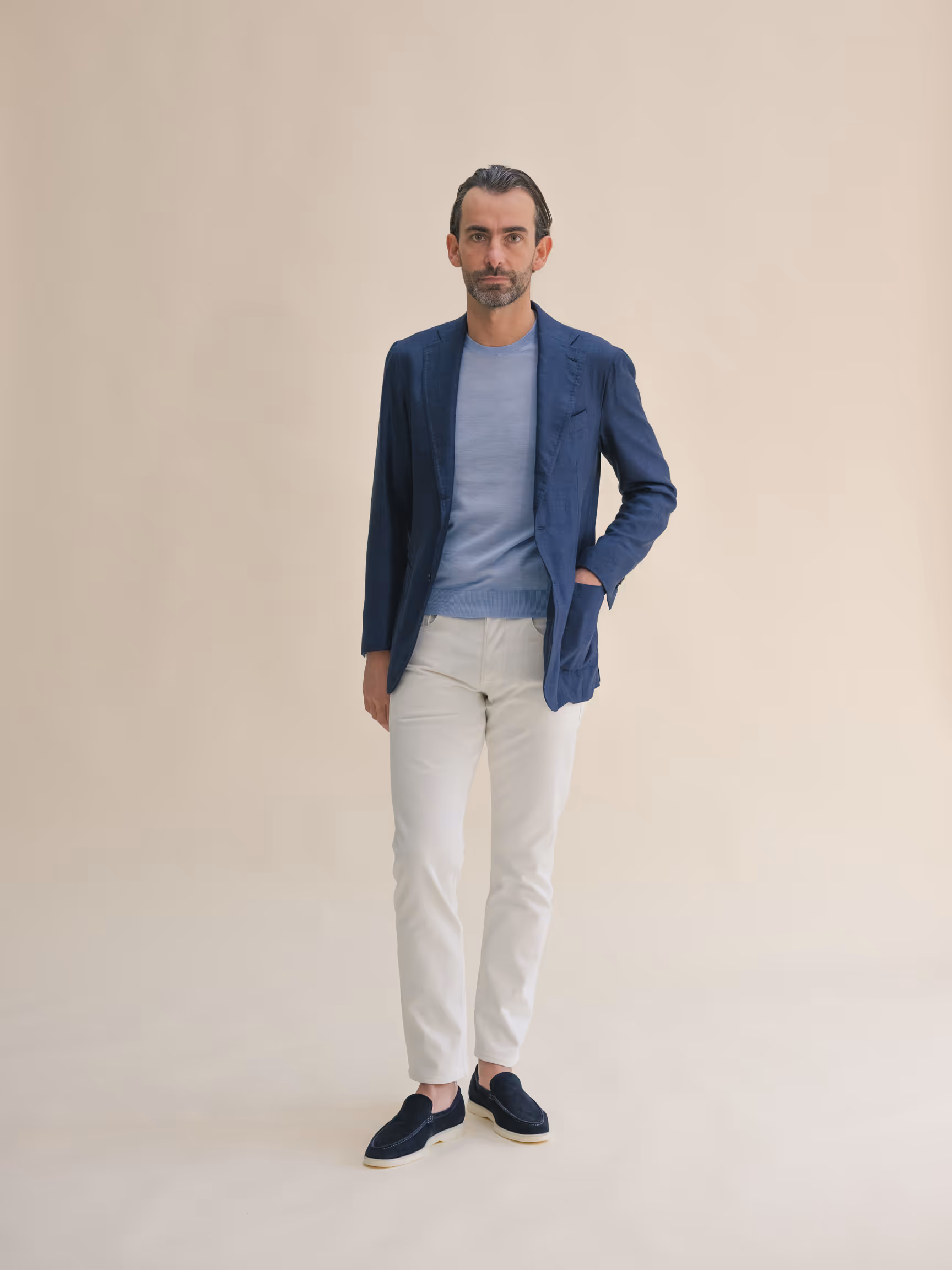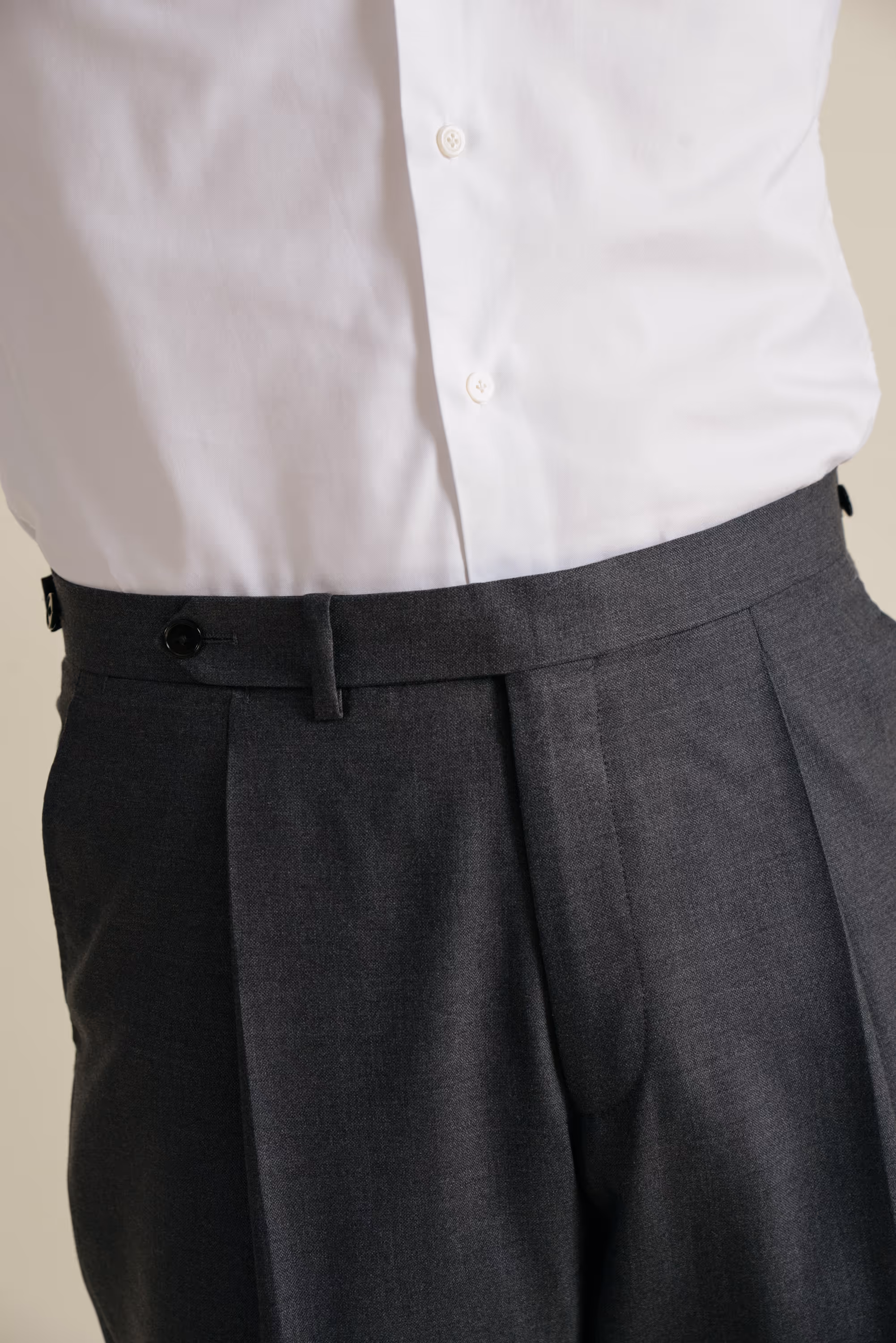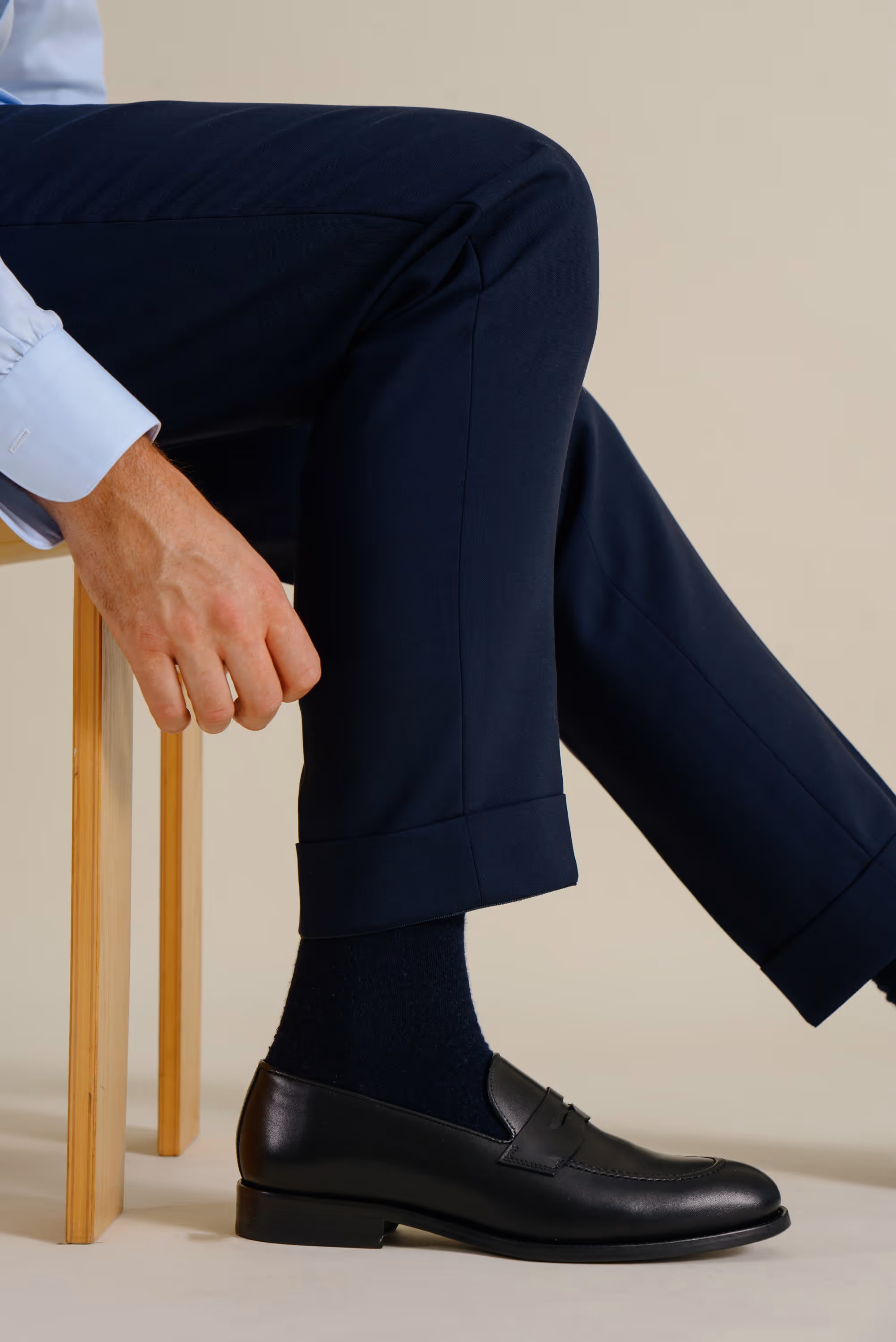 Our trousers offering includes more formal (suiting) trousers and chino's. Both are available in made-to-measure with a delivery time of 3-4 weeks.